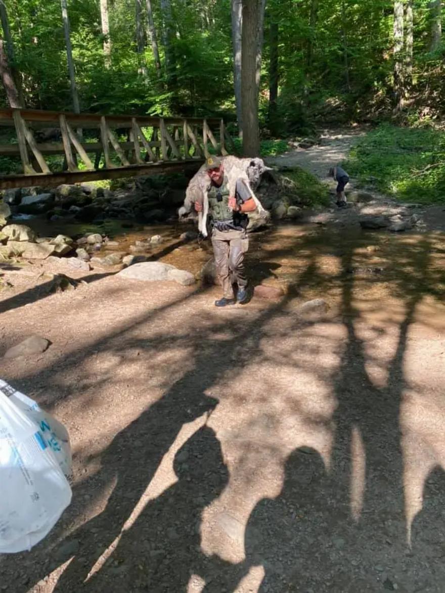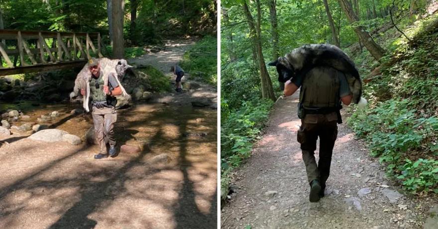 Ένας υπέροχος δασοφύλακας του πάρκου έκανε μια ηράκλεια προσπάθεια για να σώσει τη ζωή ενός γερμανικού ποιμενικού που είχε πάθει θερμοπληξία ενώ βρισκόταν σε πεζοπορία.