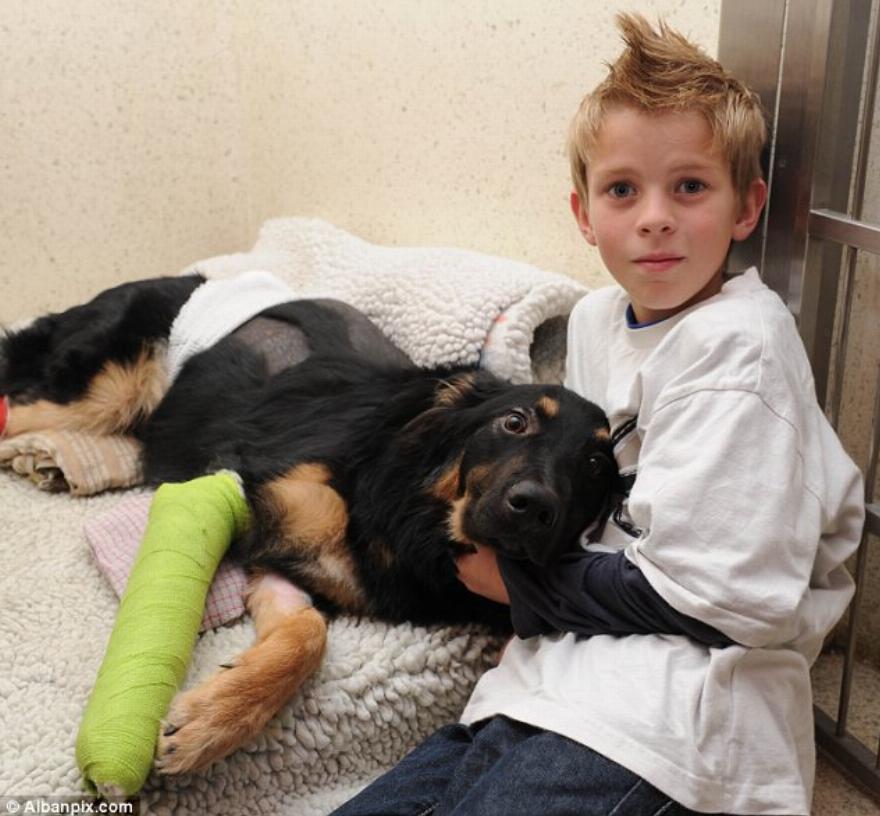 Ένα γενναίο κουτάβι γερμανικού ποιμενικού τραυματίστηκε σοβαρά αφού έσπρωξε ένα αγόρι από την πορεία ενός ανεξέλεγκτου φορτηγού και δέχτηκε ο ίδιος τη σύγκρουση.