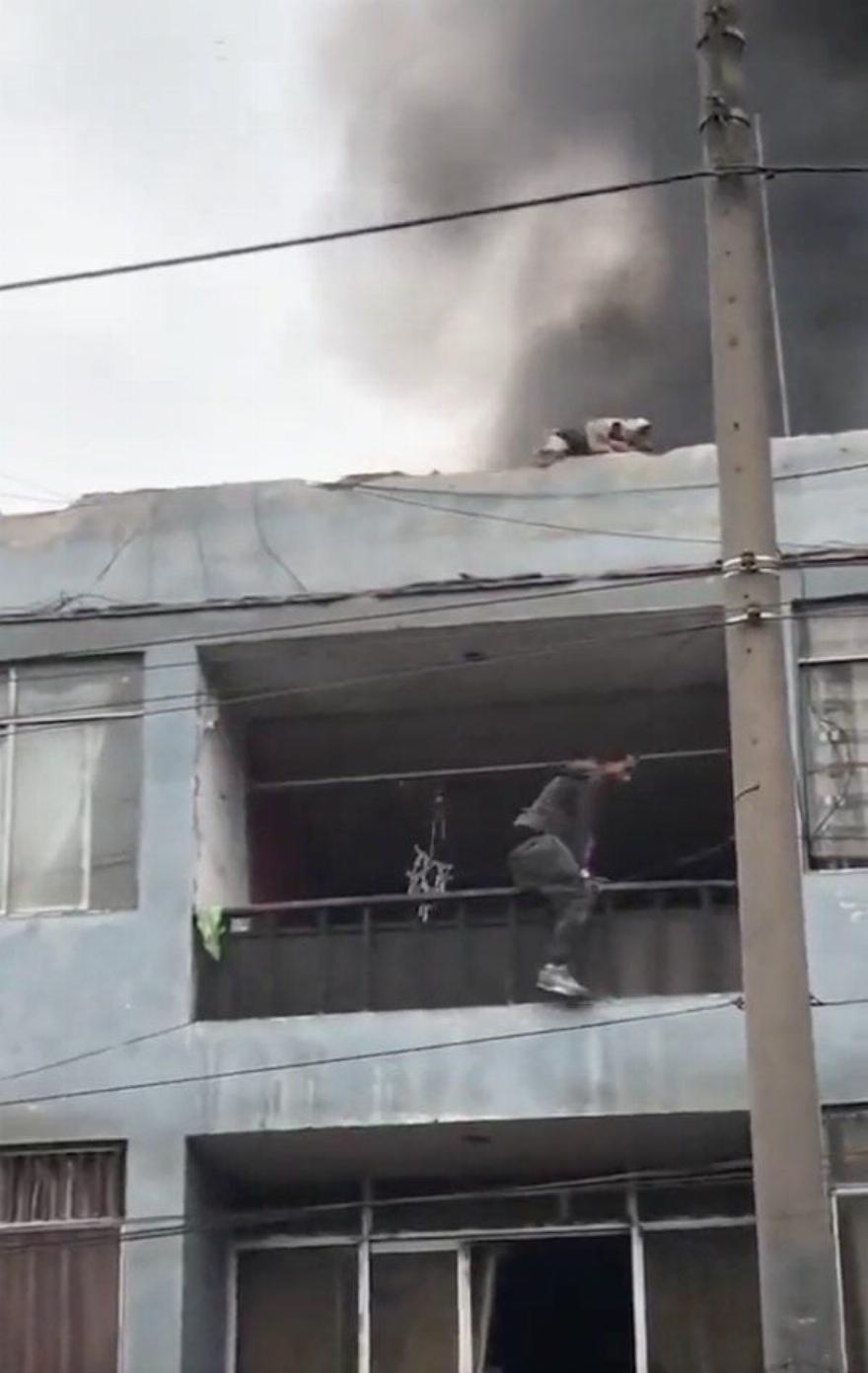 Ο Sebastián Arias, από την Κολομβία, σκαρφάλωσε στο εξωτερικό του φλεγόμενου κτιρίου για να φτάσει στην οροφή όπου τα σκυλιά προσπαθούσαν απεγνωσμένα να ξεφύγουν από τη φωτιά.