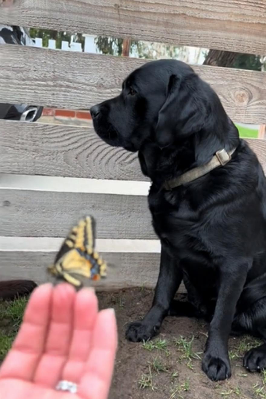 Αυτή η ιδιοκτήτρια σκύλου κρατούσε μια πεταλούδα στο χέρι της. Ήθελε να την δείξει στα σκυλιά της, αλλά ο ένας σκύλος της, ο Bruce, δεν ήθελε τίποτα από αυτά.