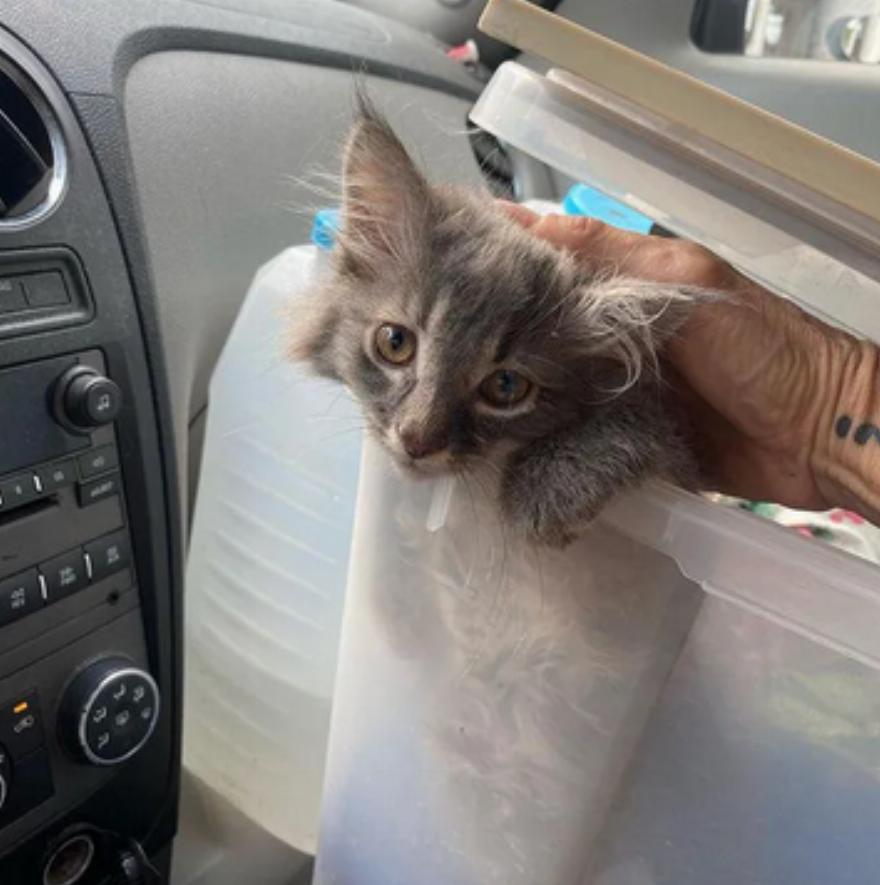 Η Donna δεν είχε μαζί της μεταφορέα εκείνη τη στιγμή, οπότε πήγε στο αυτοκίνητό της και άδειασε ένα μεγάλο δοχείο στο οποίο διατηρούσε γατοτροφές.