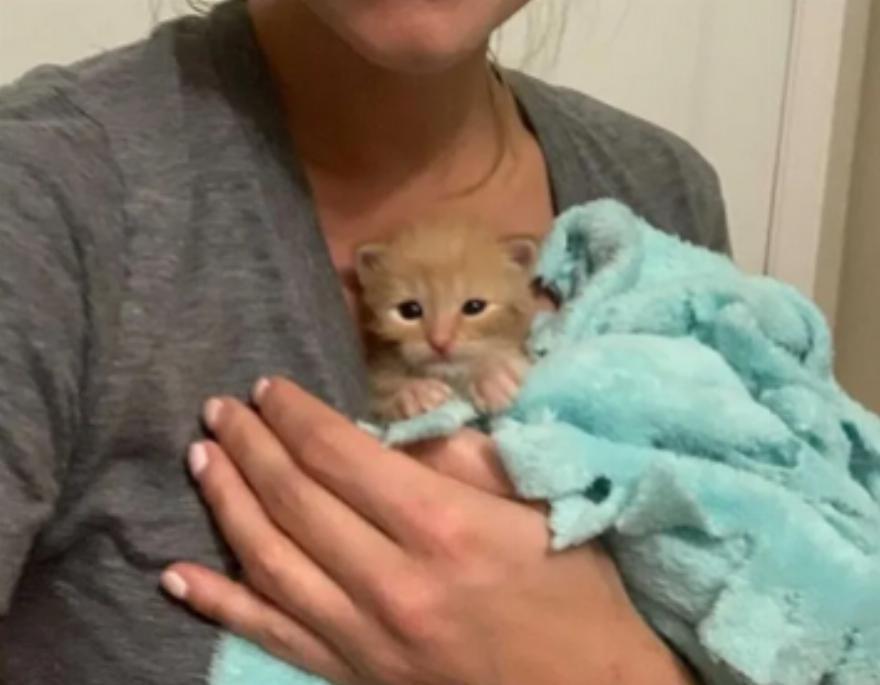 Με τη βοήθεια της Carrie, διευθύντριας του Saving One Life, το γατάκι επιβίωσε