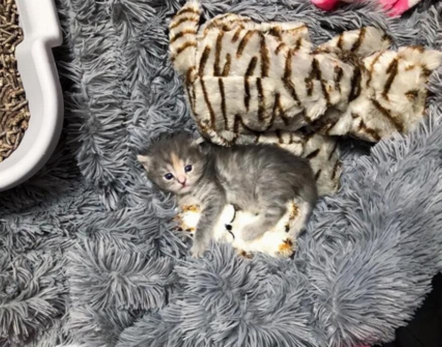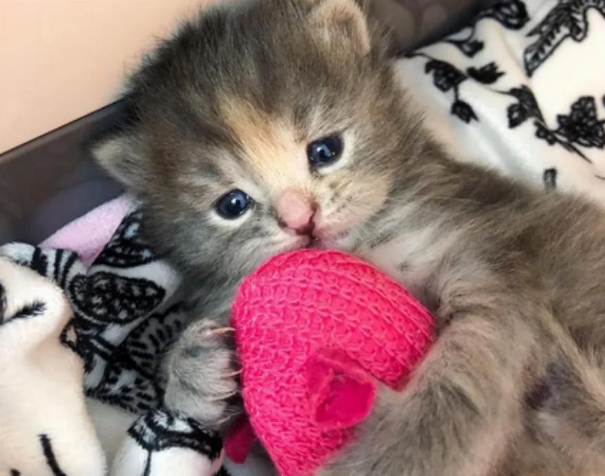 “Της έδωσα ένα λούτρινο παιχνίδι λαγουδάκι που είχε περίπου το ίδιο μέγεθος με εκείνη και της άρεσε πολύ”, δήλωσε η Mellissa, ιδρύτρια του Tiny but Mighty Kitten Rescue.