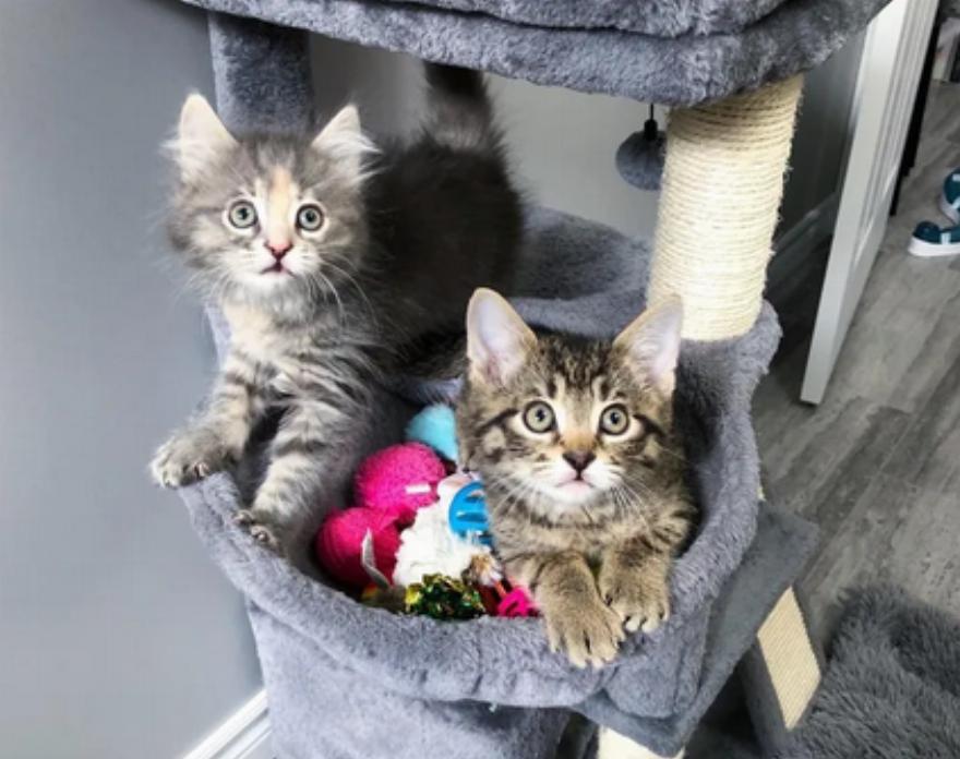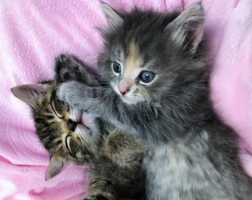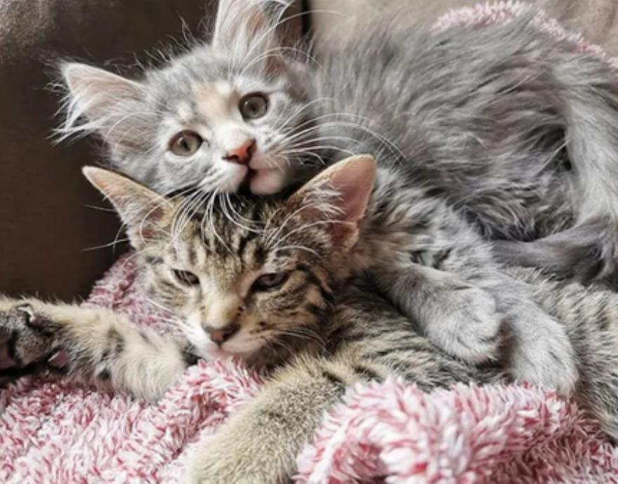 Τα δύο μικρά γατάκια βρήκαν ο ένας τον άλλον στο ανάδοχο σπίτι τους και από τότε είναι οικογένεια.