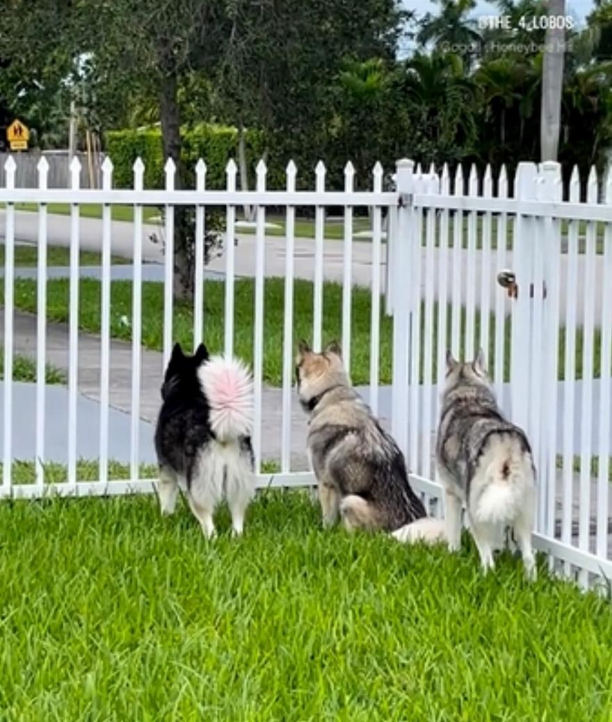 Η χρήστης του TikTok @the_4_lobos δημοσίευσε ένα αξιολάτρευτο βίντεο με τσ Huskies της να κοιτάζουν μέσα από τον φράχτη τους κάτι που βρήκαν εντελώς συναρπαστικό.