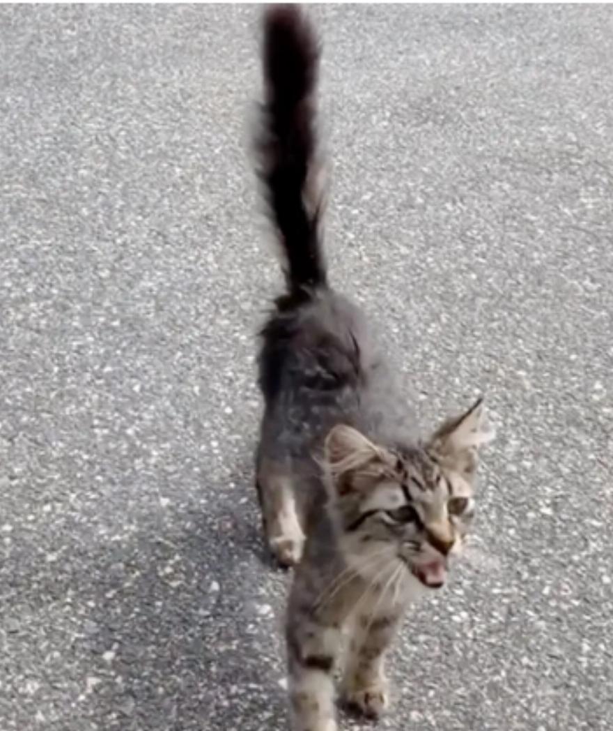 Η Kiara από τη Φλόριντα έβγαζε βόλτα έναν σκύλο στη γειτονιά, όταν είδε ένα τριχωτό πλασματάκι να τρέχει κατευθείαν προς το μέρος της – ένα γατάκι που δεν φοβόταν τον μεγάλο σκύλο, παρακαλούσε για προσοχή.