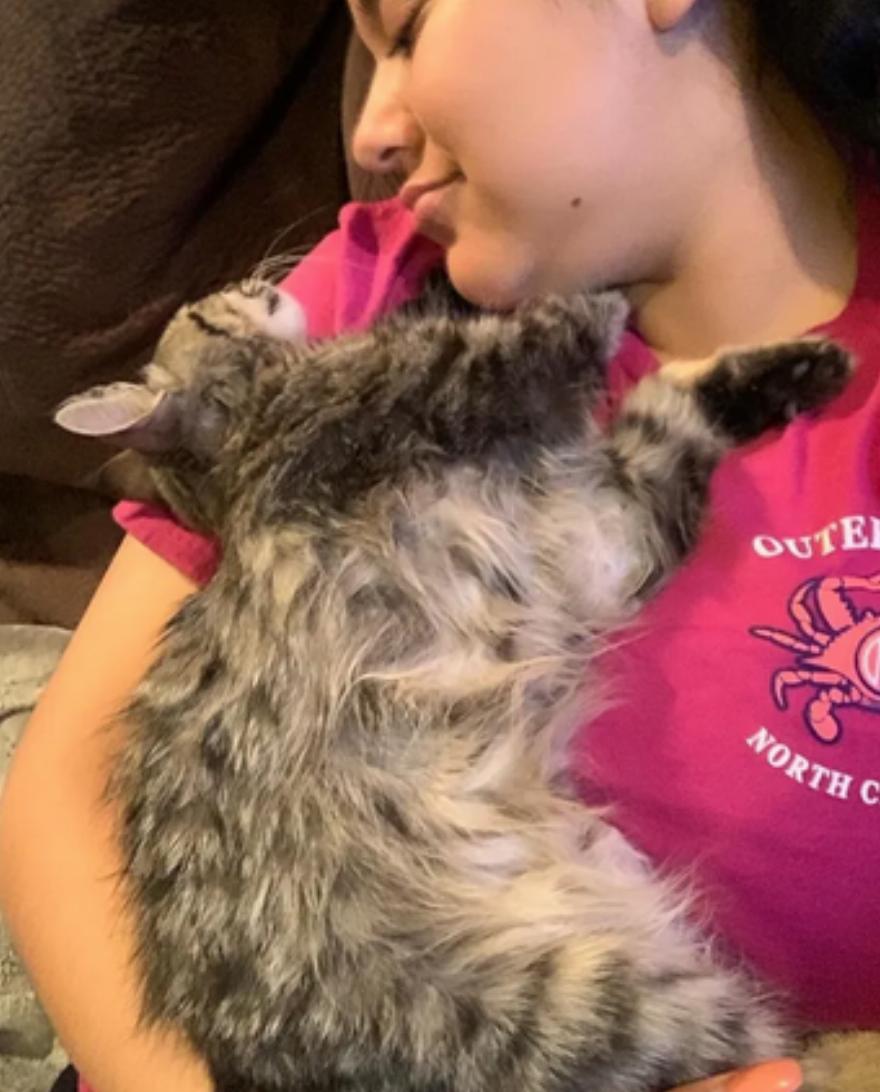 Το γλυκό γατάκι κουλουριάστηκε στην αγκαλιά της Kiara και δεν πήγαινε πουθενά. “Πιστεύω ειλικρινά ότι μέσα στην καρδιά της είχε την ελπίδα ότι θα έβρισκε ένα σπίτι με έναν καλό άνθρωπο”.