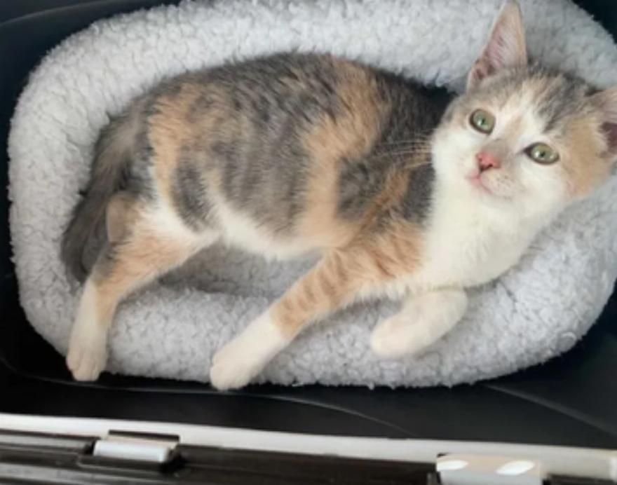 Όπως αποδείχτηκε, το γατάκι είχε εγκαταλειφθεί στο τέλος ενός χωματόδρομου και περιπλανήθηκε στο δρομάκι του σπιτιού της γυναίκας. Η καλή Σαμαρείτισσα απευθύνθηκε στην τοπική διάσωση Sparkle Cat Rescue για βοήθεια.