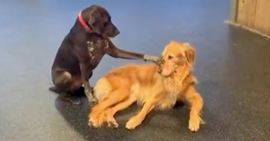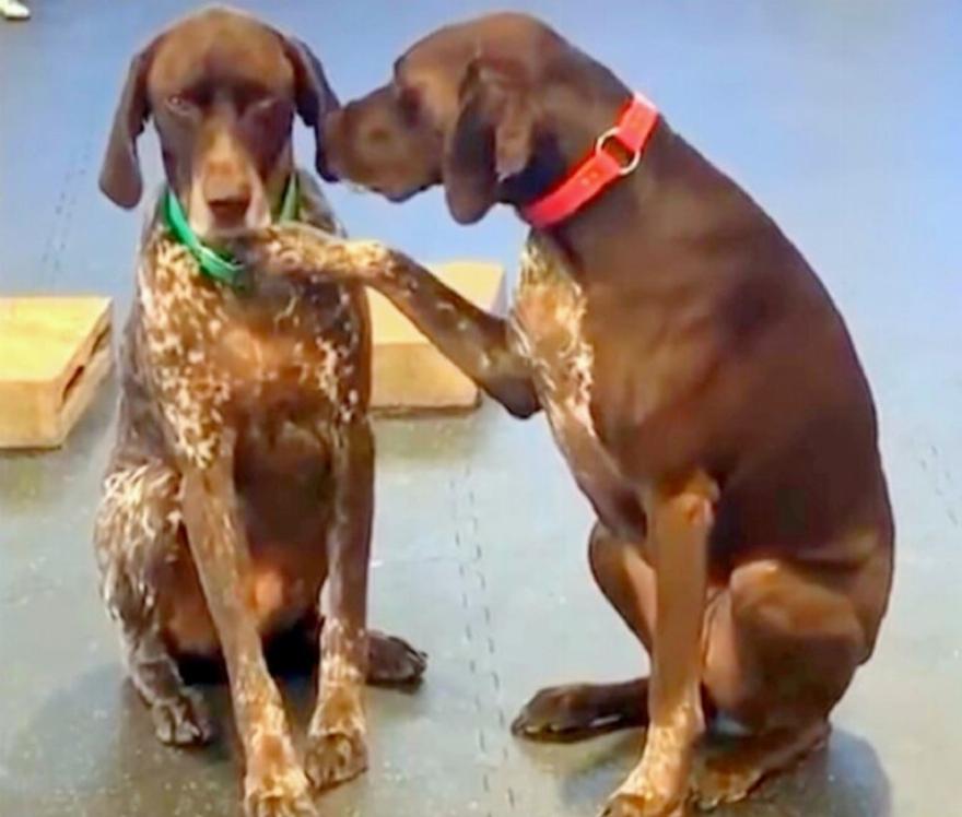 Το χτύπημα των χεριών στους ανθρώπους ή σε άλλα σκυλιά πιστεύεται ότι είναι μια διακριτική χειρονομία των σκύλων για να κερδίσουν την προσοχή τους ή να ξεκινήσουν το παιχνίδι, αλλά αυτή η απλή πράξη έχει ένα εντελώς διαφορετικό νόημα για τη Ruby. Αρχικά, χάιδευε απλώς τον Miles ως έναν τρόπο να τον προσέχει. Σύντομα, όμως, άρχισε να πλησιάζει άλλα σκυλιά στο κέντρο και κυριολεκτικά να τα πνίγει σε ανακουφιστικά γρατζουνίσματα στο κεφάλι και την πλάτη τους!