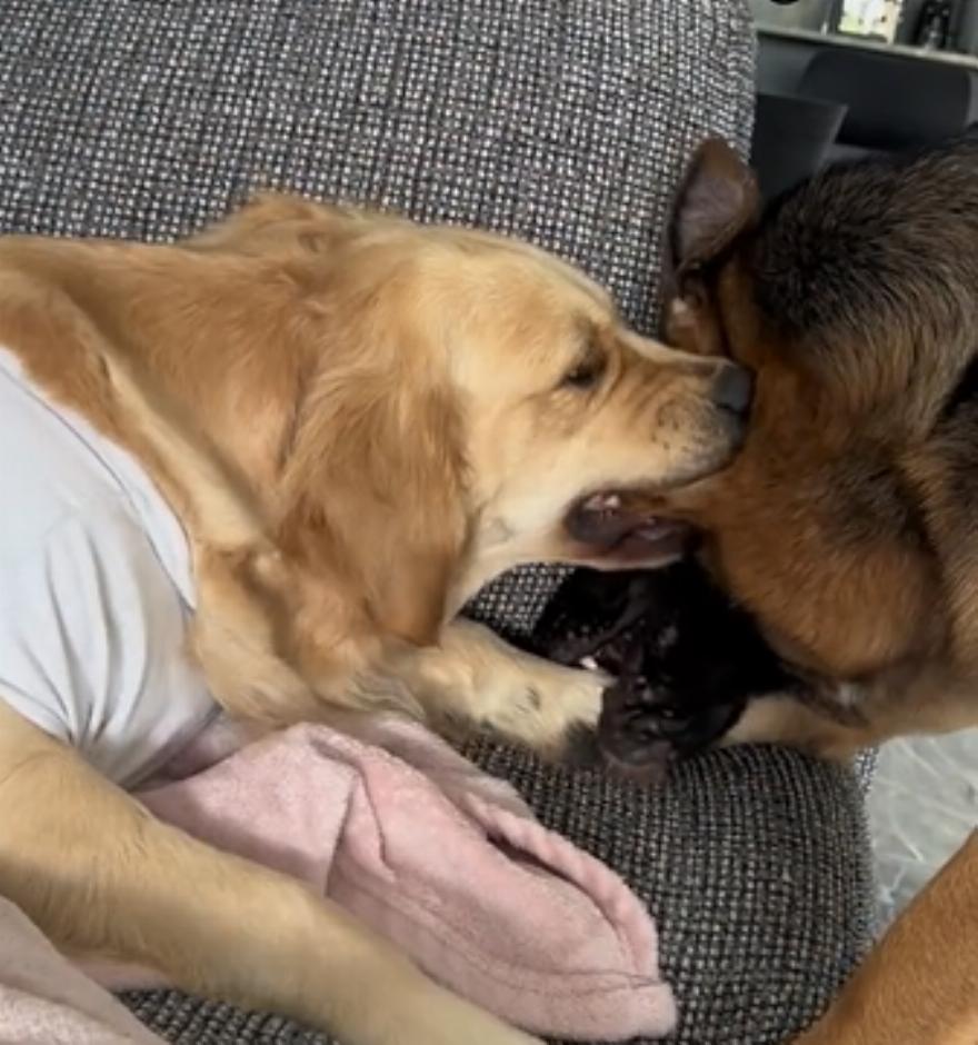 Ένα κλιπ στα μέσα κοινωνικής δικτύωσης που καταγράφει ένα γκόλντεν ριτρίβερ και έναν γερμανικό ποιμενικό να παίζουν έχει προκαλέσει υστερία στο διαδίκτυο.