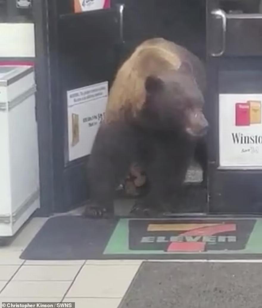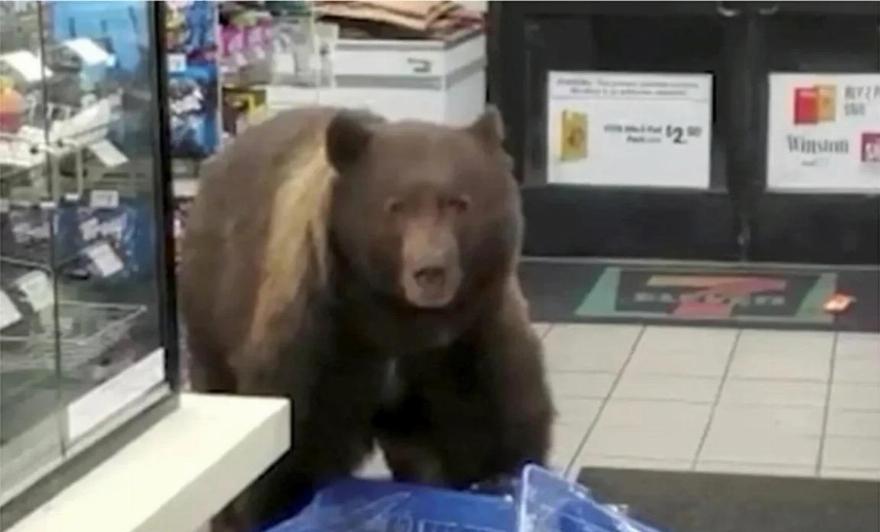 Ένας υπάλληλος στο 7-Eleven έπαθε σοκ από μια τεράστια αρκούδα, που μπήκε στο κατάστημα για να πάρει μερικές σοκολάτες ως σνακ!