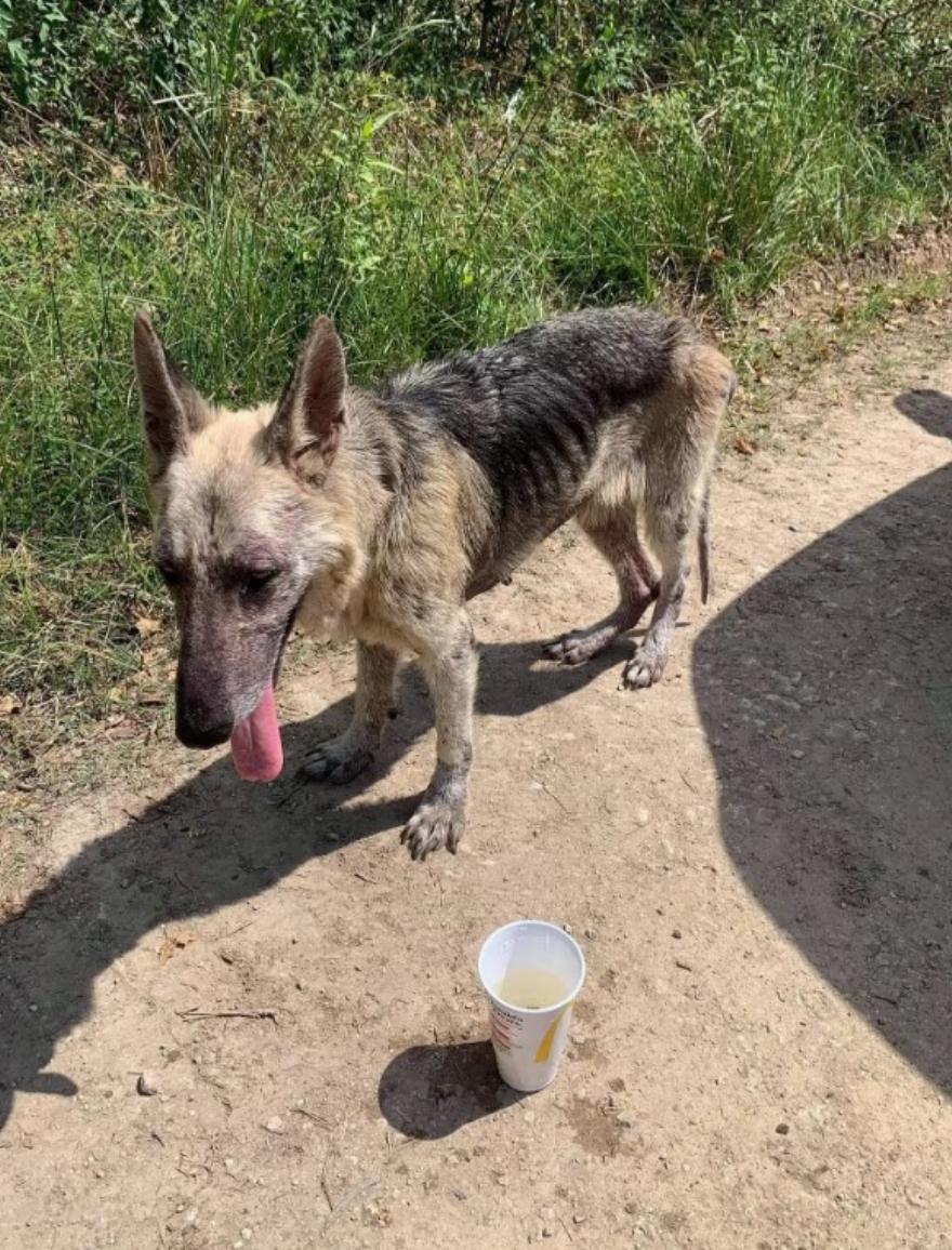 Τον Σεπτέμβριο, εργάτες οικοδομών εντόπισαν τον 6χρονο γερμανικό ποιμενικό ενώ πήγαιναν σε ένα εργοτάξιο στο νοτιοανατολικό Τέξας. Έδωσαν στο διψασμένο κουτάβι λίγο νερό και ειδοποίησαν την τοπική οργάνωση διάσωσης Be Intentional.