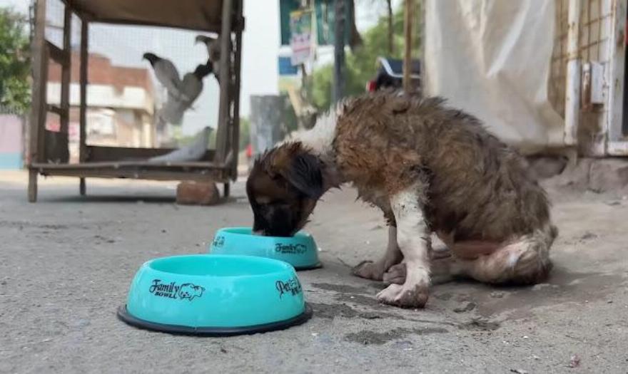 Ωστόσο, στη συνέχεια του δόθηκε τροφή και νερό! Ήταν πολύ ευγνώμων αφού τον βοήθησαν. Αγαπάει τους πάντες γύρω του. Πόσο φοβερό!