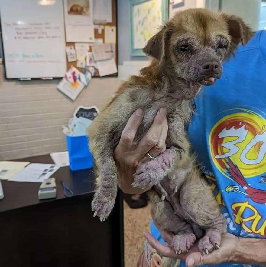 Όταν η Abby περισυνελέγη από τον δρόμο από την υπηρεσία ελέγχου ζώων τον Σεπτέμβριο, ήταν αδύνατη, άρρωστη και έτρωγε σκουπίδια για να επιβιώσει. Μια ματιά στο σχεδόν φαλακρό ηλικιωμένο σκυλί – που πιστεύεται ότι ήταν μεταξύ 10 και 12 ετών – και ο έλεγχος των ζώων ήξερε ότι χρειαζόταν περισσότερη βοήθεια από ό,τι είχαν τους πόρους για να της δώσουν. Επικοινώνησαν με την , οι διασώστες της οποίας μπορούσαν να δουν ότι υπήρχε ένα όμορφο σκυλί έτοιμο να λάμψει αν του δινόταν αγάπη και φροντίδα.