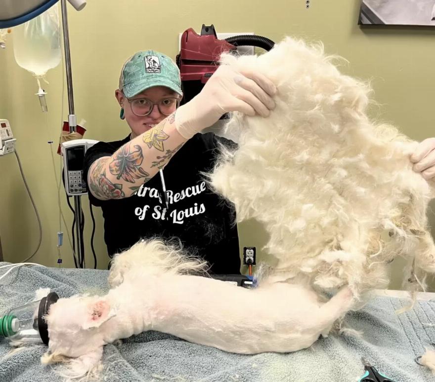 Αυτό ακριβώς συνέβη με ένα κουτάβι στο Μιζούρι των Ηνωμένων Πολιτειών. Ο σκύλος φαινόταν μεγαλύτερος, αλλά είναι μόλις 2 ετών, αλλά τα μαλλιά του ήταν μπερδεμένα. Ευτυχώς, το σκυλί, που ονομάστηκε Crunchy, βρέθηκε από το “Stray Rescue of St. Louis”.
