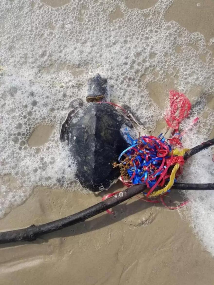 Δυστυχώς, αυτή η χελώνα είναι μόνο ένα από τα πολλά ζώα που πέφτουν θύματα αυτού του μοναδικού τύπου απορριμμάτων. Συνήθως απελευθερώνονται στον αέρα κατά τη διάρκεια εορτασμών, τα μπαλόνια και τα θραύσματά τους καταλήγουν στους ωκεανούς – και τραυματίζουν ή σκοτώνουν θαλάσσια ζώα κατά τη διαδικασία.