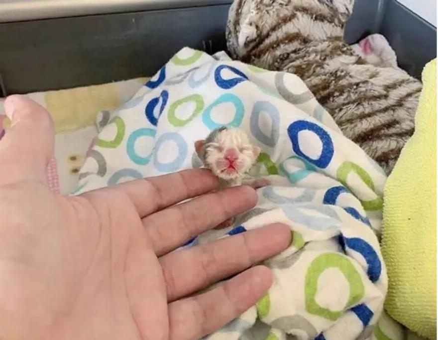 Μια μικροσκοπική γατούλα ανακαλύφθηκε μπροστά από μια κατοικία στο Λας Βέγκας από έναν συμπονετικό γείτονα. Η θέα των πανομοιότυπων μικρών αδελφών που βρίσκονταν κοντά τους ράγισε την καρδιά τους, αλλά δυστυχώς δεν μπορούσαν να κάνουν τίποτα για να τα βοηθήσουν. Οι μητέρες γάτες δεν βρίσκονταν πουθενά, αφήνοντας το μοναχικό βρέφος να έχει απόλυτη ανάγκη από φροντίδα.
