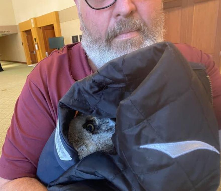 “Ο John κάλεσε τη σύζυγό του, η οποία μπόρεσε να οδηγήσει τη μικρή κουκουβάγια” στο Κέντρο για τα αρπακτικά πουλιά, μια κοντινή εγκατάσταση αποκατάστασης άγριων ζώων.
