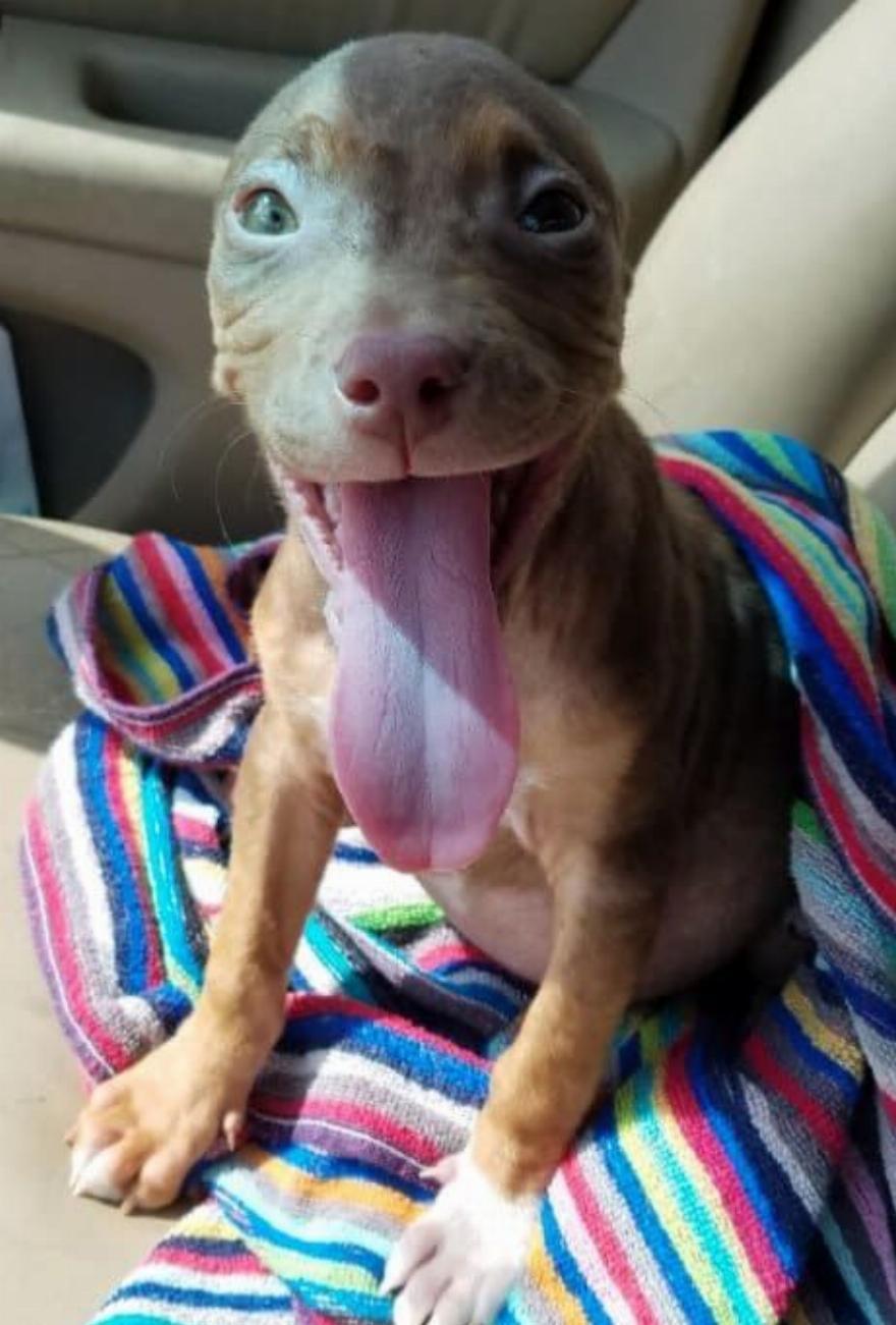 Το γλυκό κουτάβι πέρασε τους δύο πρώτους μήνες της ζωής της ως άστεγος σκύλος στους δρόμους της Τζόρτζια. Στο σημείο που βρέθηκε από εργάτες κάλυψης, το στομάχι της ήταν φορτωμένο με σκουλήκια και είχε μια πραγματικά επιβαρυντική κατάσταση του δέρματος.