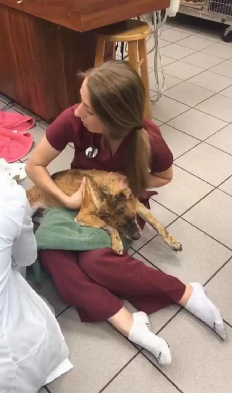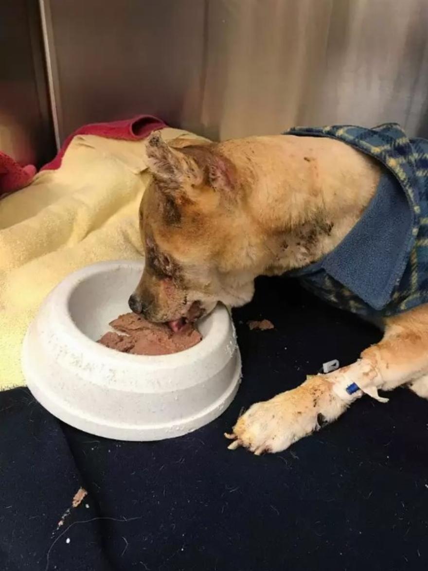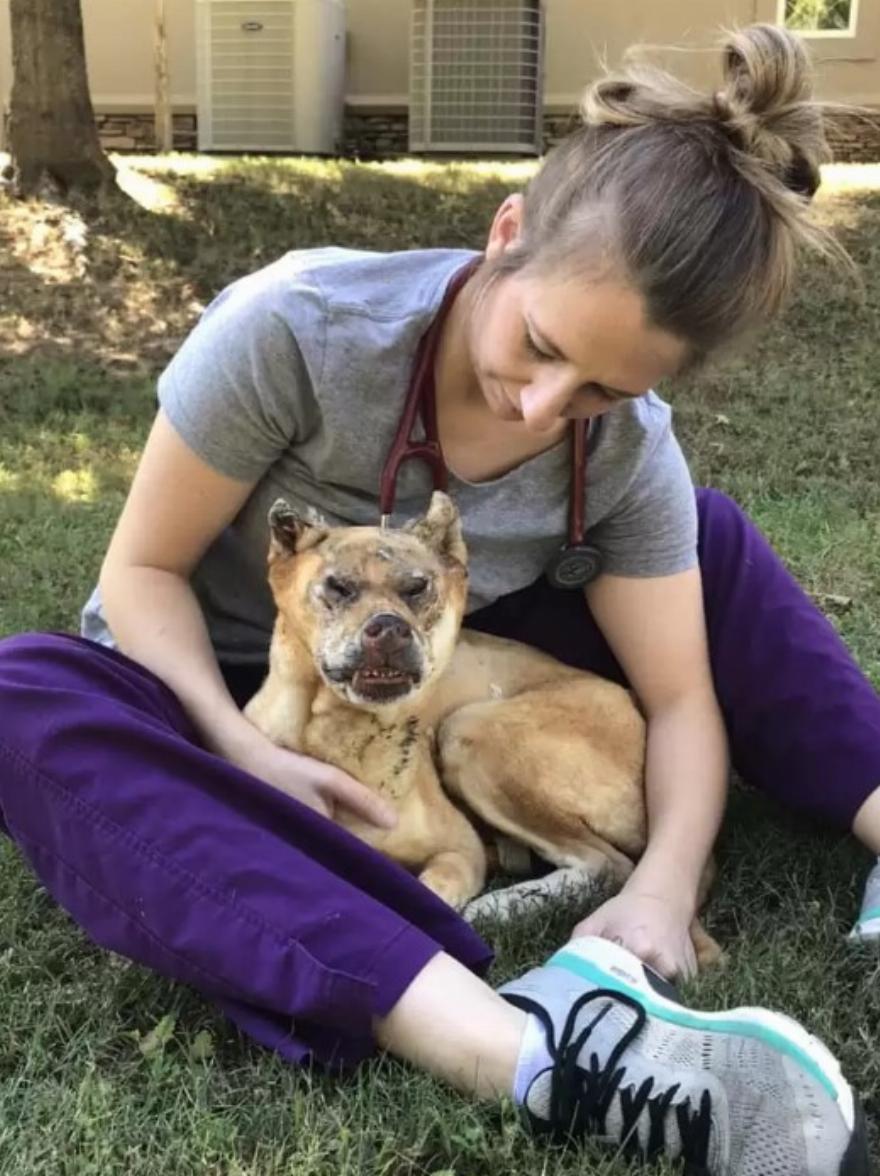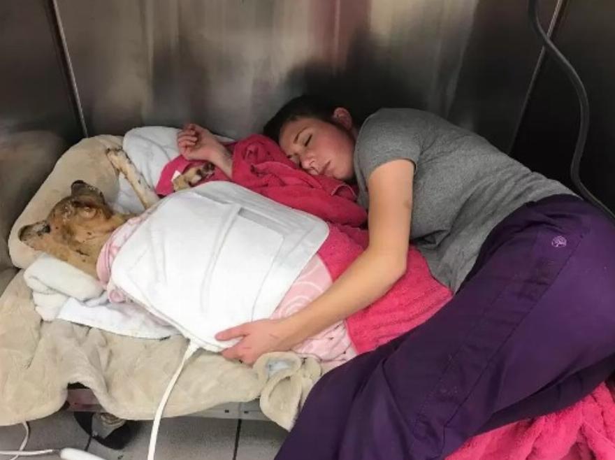 “Είχε εγκαύματα γύρω από τα μάτια του, το στόμα του, τα αυτιά του, την κοιλιά του”, δήλωσε στο The Dodo η Emily Martin, κτηνίατρος στο Care More Animal Hospital. “Πραγματικά δεν ξέραμε αρχικά πόσο σοβαρά ήταν τα τραύματά του, ακριβώς επειδή έπρεπε να ανησυχούμε για τα εγκαύματα από εισπνοή”.