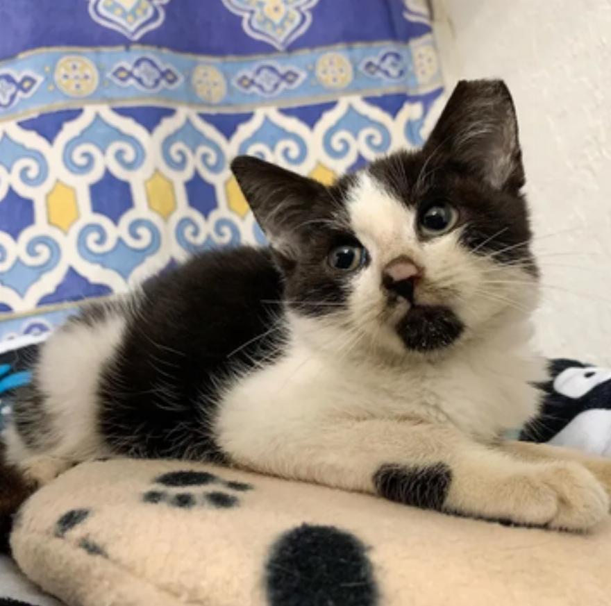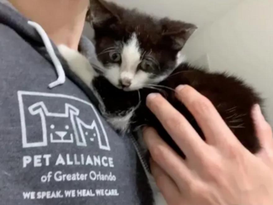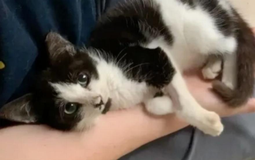 Ο Milk Dud ή αλλιώς Dudley διασώθηκε νωρίτερα αυτό το μήνα. Το πεινασμένο γατάκι μπήκε κατευθείαν σε μια παγίδα για φαγητό. Τότε ήταν που αποχαιρέτησε τη ζωή στους δρόμους.