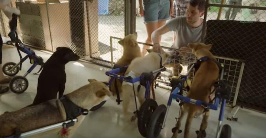 Το Elephant Nature Park στην Ταϊλάνδη φιλοξενεί πολλούς διασωθέντες ελέφαντες. Οι ελέφαντες προέρχονται από όλα τα κοινωνικά στρώματα και από ζωές με πολλές δυσκολίες. Αλλά αυτό που πολλοί άνθρωποι δεν γνωρίζουν είναι ότι το καταφύγιο ελεφάντων φιλοξενεί επίσης πάνω από 400 διασωθέντες σκύλους, συμπεριλαμβανομένων 32 πολύ ιδιαίτερων σκύλων. Τα 32 σκυλιά έχουν χάσει τη χρήση των ποδιών τους λόγω ατυχήματος, ασθένειας, παραμέλησης και κακοποίησης.