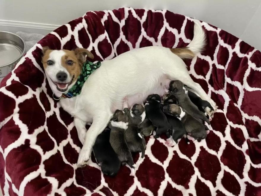 Η σκύλα ήταν έγκυος, αλλά η κατάστασή της χρειαζόταν χειρουργική επέμβαση καισαρικής τομής για να γεννήσει, αφού εξετάστηκε από τους κτηνιάτρους. Η Δρ Emily Bewley δήλωσε ότι το τεριέ, το οποίο ονομάστηκε Momma Malone, μεταφέρθηκε στο καταφύγιό τους πάνω στην ώρα για να μπορέσει να γεννήσει τα κουτάβια της με ασφάλεια. Έτσι, η Dr. Bewley πήρε το σκυλί για να γεννήσει στο σπίτι της με ηρεμία.