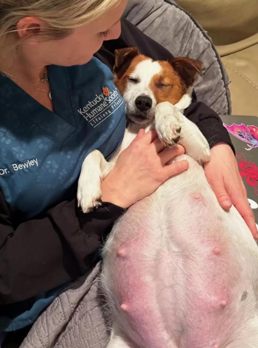 Οι κτηνίατροι του Kentucky Humane Society άκουσαν για μια θηλυκή σκυλίτσα, που είχε κολλήσει σε ένα υπερπλήρες καταφύγιο στο Kentucky, οπότε, πήγαν άμεσα για βοήθεια.
