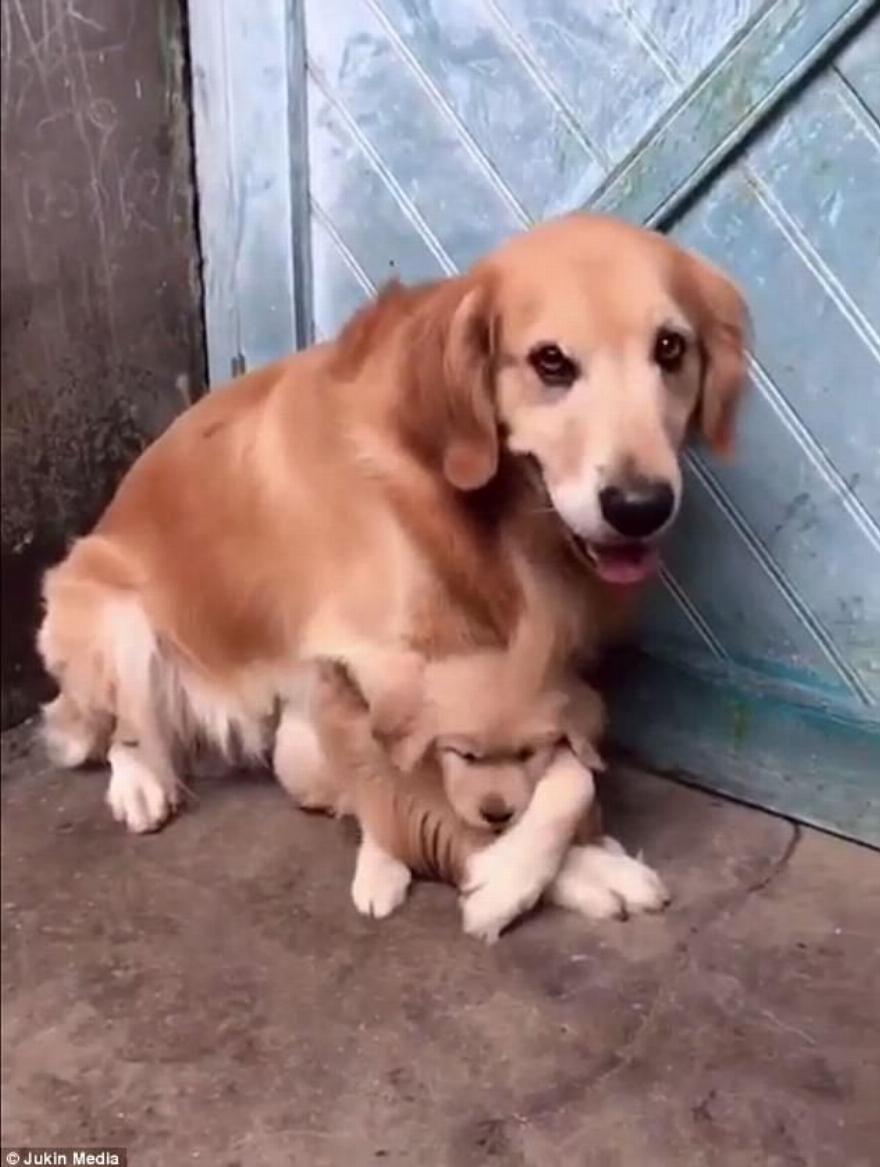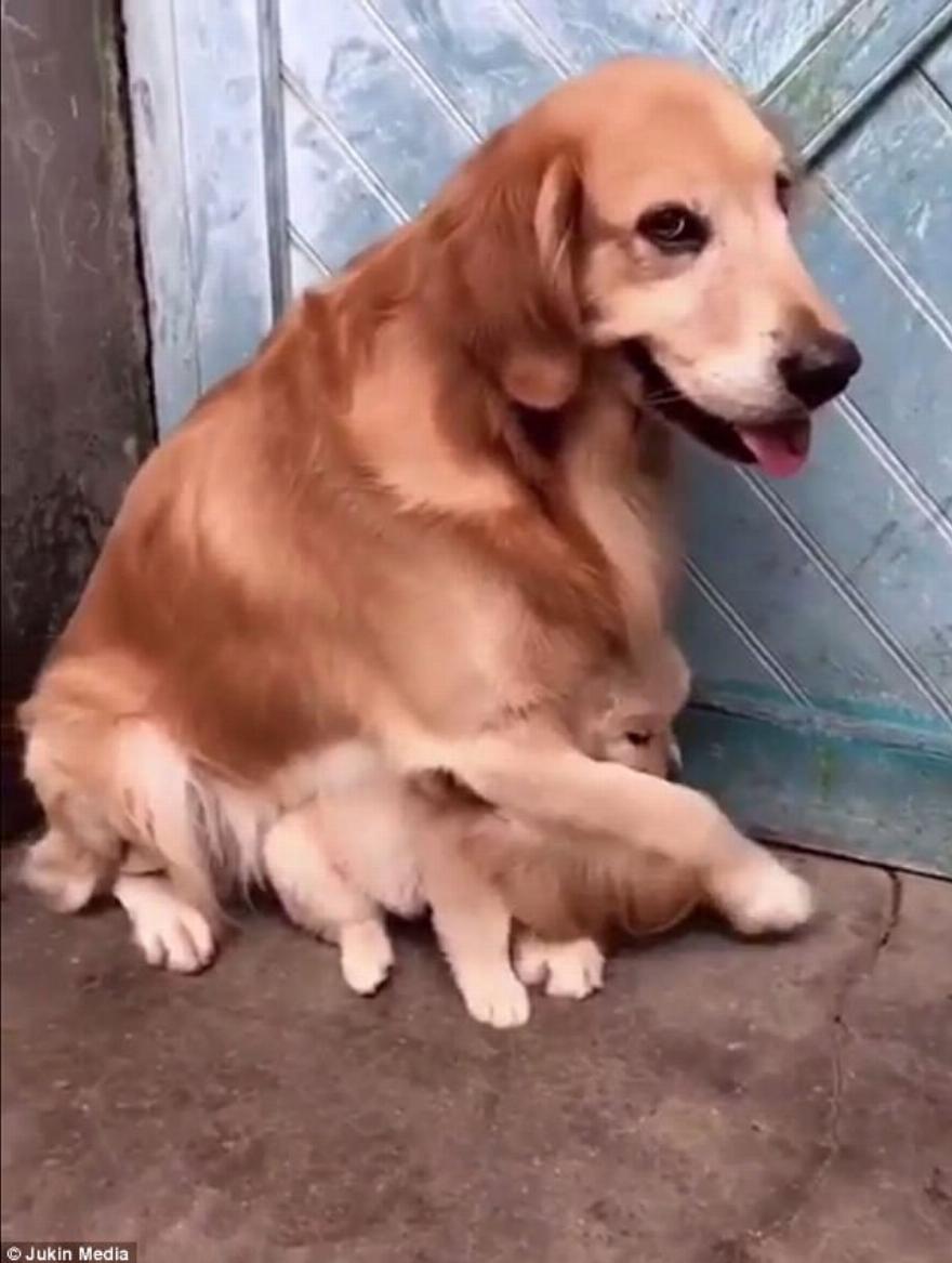 Κάτι ύποπτο μπορεί να συνέβη, καθώς ο γονέας φαίνεται να προστατεύει το κουτάβιΛίγο αργότερα, ο προστατευτικός γονέας κοιτάζει την γυναίκα νευρικά, και μετά πάλι κάτω – και προστατεύει το πολύτιμο κουτάβι του με τα δύο πόδια του.Το κουτάβι φαίνεται άνετο και ήρεμο καθ’όλη την διάρκεια του βίντεο – καθώς συνεχίζει να ζει σε έναν ανέμελο κόσμο προς το παρόν.Σε ένα σημείο, ο σκύλος καλύπτει τα μάτια του μωρού με τα δύο πόδια του
