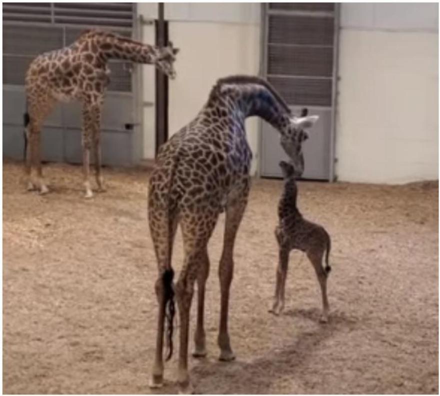 Ο πατέρας φίλησε το μωρό πολλές φορές, στη συνέχεια το φίλησε η μαμά καμηλοπάρδαλη, η οποία ήταν μια πολύ συγκινητική στιγμή, που δείχνει πόσο νοιάζεται η μαμά.