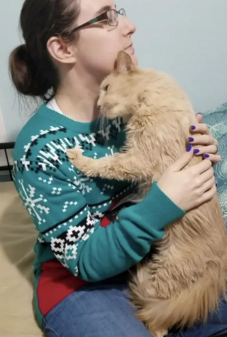 Ο γάτος ήταν πολύ ντροπαλός όταν τον έφεραν έξω για να γνωρίσει τον Dan. “Προφανώς, είχε παραμεληθεί. Νιαούρισε σαν να έλεγε “όχι” όταν πήγα να τον βάλουν στο κλουβί μεταφοράς για να τον φέρω σπίτι”.