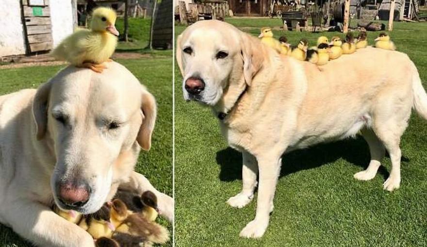 Η αξιολάτρευτη φωτογραφία με ένα λαμπραντόρ που αποφάσισε να πάρει υπό την προστασία του 9 ορφανά παπάκια, κάνει το γύρο του διαδικτύου.