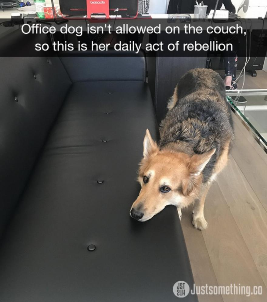 10. Ο σκύλος του γραφείου δεν επιτρέπεται στον καναπέ, οπότε αυτή είναι η καθημερινή πράξη εξέγερσής του.