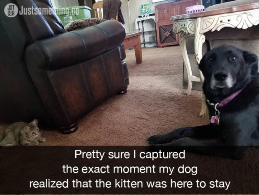11. Είμαι αρκετά σίγουρος ότι κατέγραψα την ακριβή στιγμή που ο σκύλος μου κατάλαβε ότι το γατάκι ήταν εδώ για να μείνει