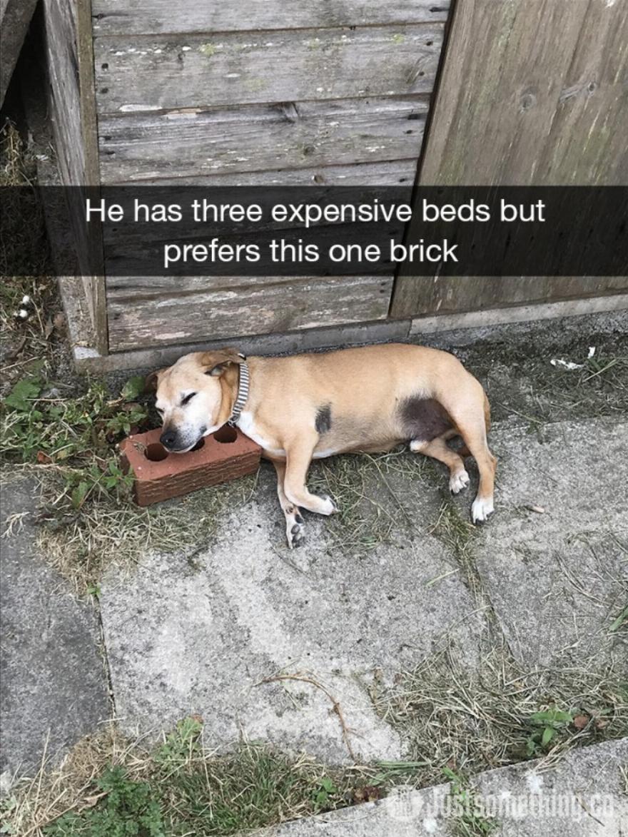 Από τον σκύλο που έχει την ευκαιρία να κοιμηθεί σε ένα ακριβό κρεβάτι αλλά προτιμά να ακουμπήσει το κεφάλι του σε ένα τούβλο (ναι, ένα τούβλο!), μέχρι τον σκύλο του γραφείου που επαναστατεί στον κανόνα “όχι στον καναπέ”, είμαστε σίγουροι ότι αυτές οι φωτογραφίες θα κάνουν τη μέρα σας λίγο καλύτερη.