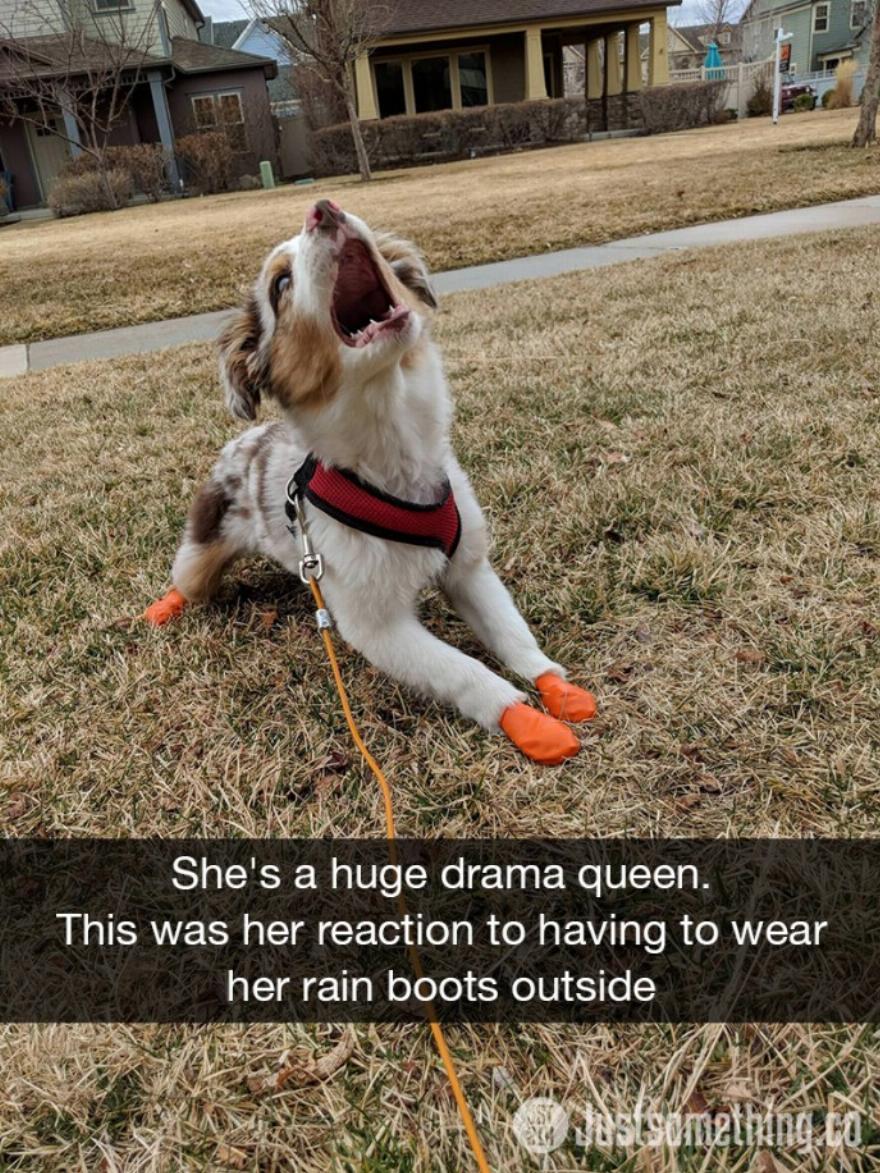 17. Είναι μια τεράστια βασίλισσα του δράματος. Αυτή ήταν η αντίδρασή της όταν έπρεπε να φορέσει τις μπότες βροχής έξω