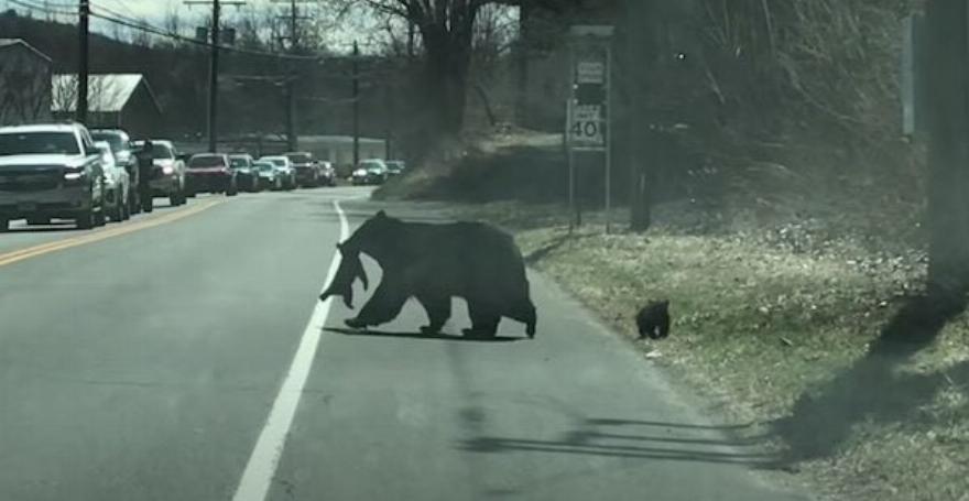 Μια γυναίκα στο Γουίνστεντ του Κονέκτικατ βρήκε τον εαυτό της να συμπάσχει με μια μητέρα αρκούδα όταν είδε το ζώο να προσπαθεί να περάσει τα τέσσερα μικρά της απέναντι από το δρόμο. Η κυκλοφορία είχε σταματήσει στο δρόμο, ώστε η οικογένεια της αρκούδας να μπορέσει να διασχίσει με ασφάλεια, αλλά η μαμά αρκούδα είχε σίγουρα τα “χέρια” – ή θα έπρεπε να πούμε – τις πατούσες της γεμάτες!