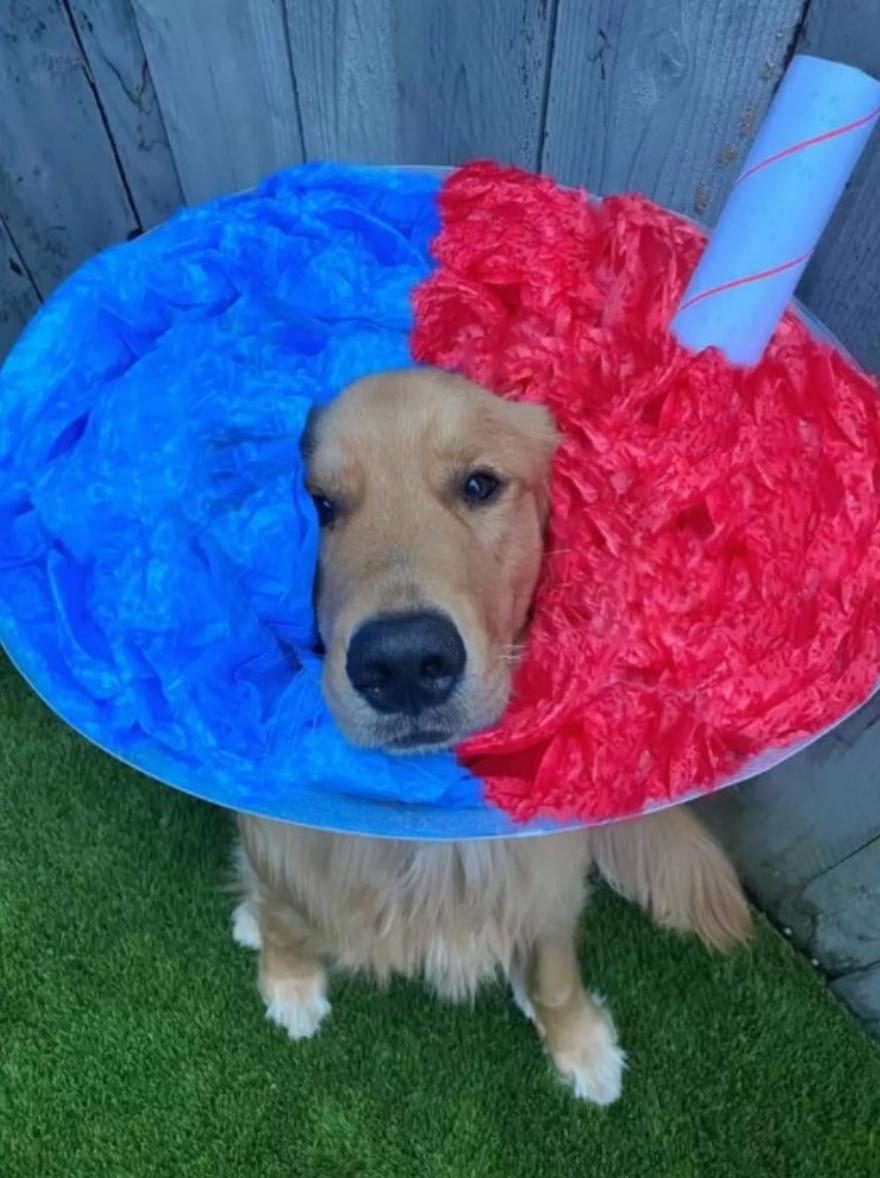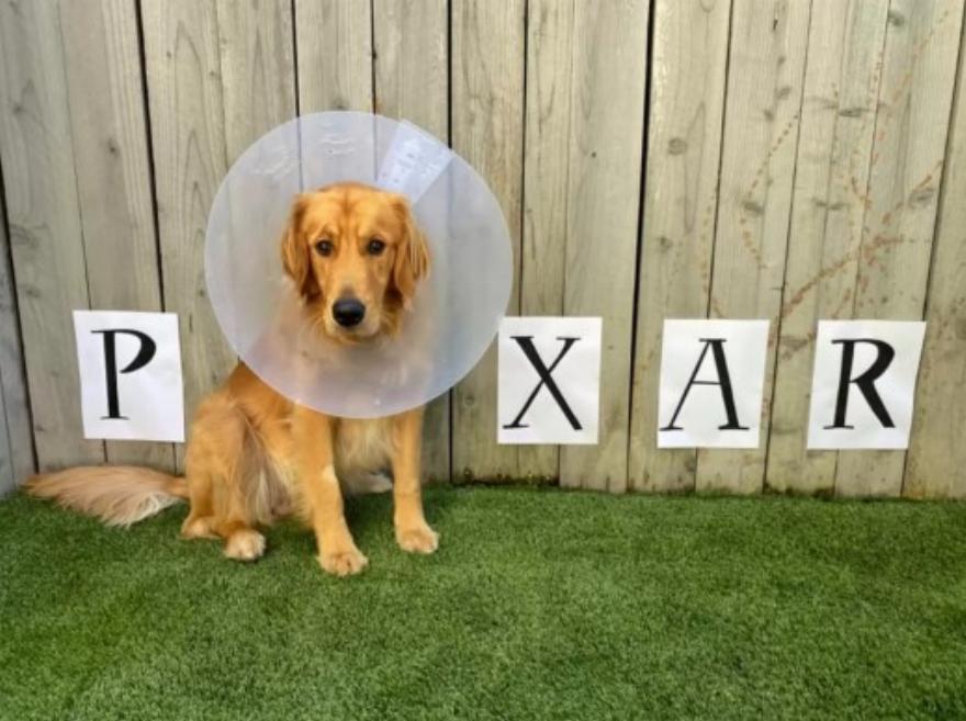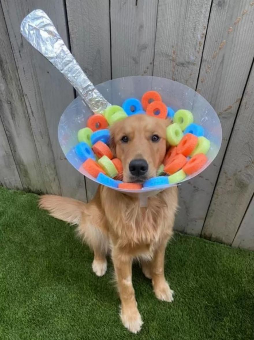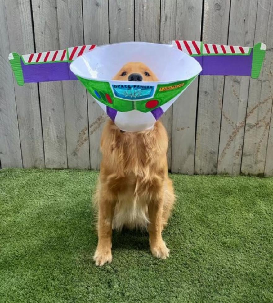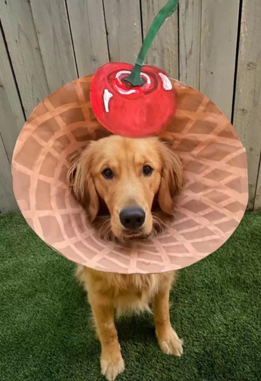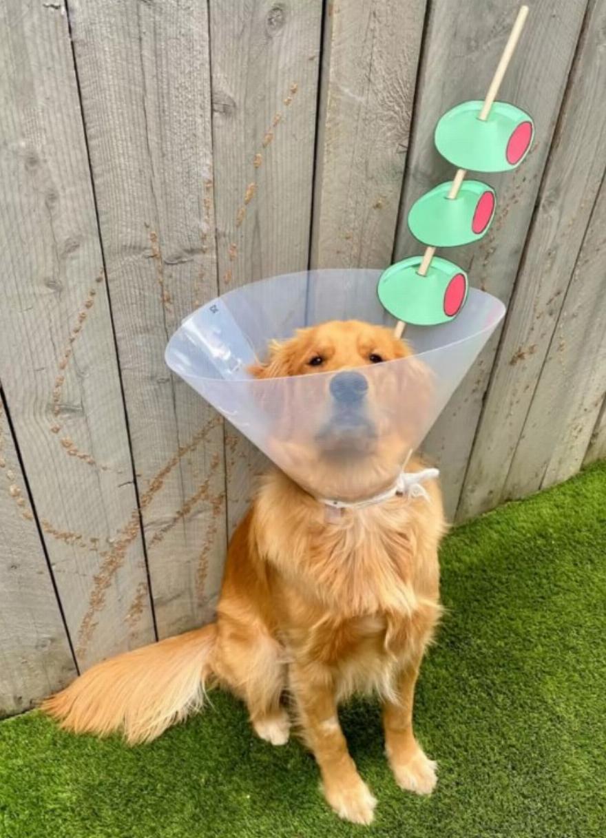 Για τον Φιν, του έδωσε κάτι να επικεντρωθεί αντί να κολλάει στον ενοχλητικό κώνο. Ξέρει ότι κάθε φορά που κάθεται ακίνητος για μια φωτογραφία, παίρνει πάντα πολλές λιχουδιές μετά, οπότε οι φωτογραφήσεις με κώνους ήταν ένας διασκεδαστικός τρόπος για να απασχολείται κάθε μέρα.