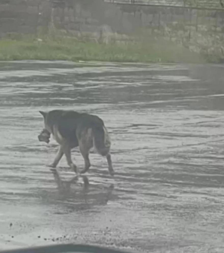 Ο ηλικιωμένος σκύλος περπατούσε πάντα στο πλευρό του ιδιοκτήτη του, κουνώντας την ουρά του χαρούμενος στους ανθρώπους που περνούσαν, ώσπου μια μέρα, κάτοικοι της περιοχής την είδαν να περιφέρεται μόνη με ένα παιχνίδι. Ο κηδεμόνας της πέθανε, κι έτσι άρχισε να περιφέρεται μόνη με το λούτρινο ζωάκι της, το οποίο κουβαλούσε μαζί της όπου κι αν πήγαινε και δεν το άφηνε να φύγει.