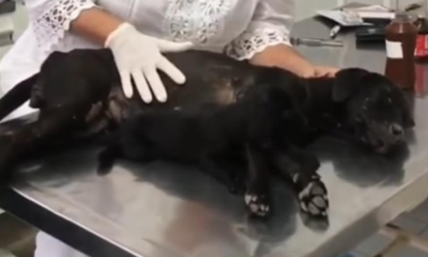 Έκλαιγε καθώς έβλεπε τα κουτάβια της πεινασμένα