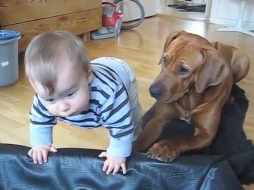 Η Lea λατρεύει τον Alfred το μωρό και παρακολουθεί με ανησυχία ό,τι κάνει. Σε αυτό το χαριτωμένο βίντεο θέλει να βοηθήσει το μικρό ανθρώπινο αδελφάκι της να σκαρφαλώσει στο κρεβάτι του σκύλου της.