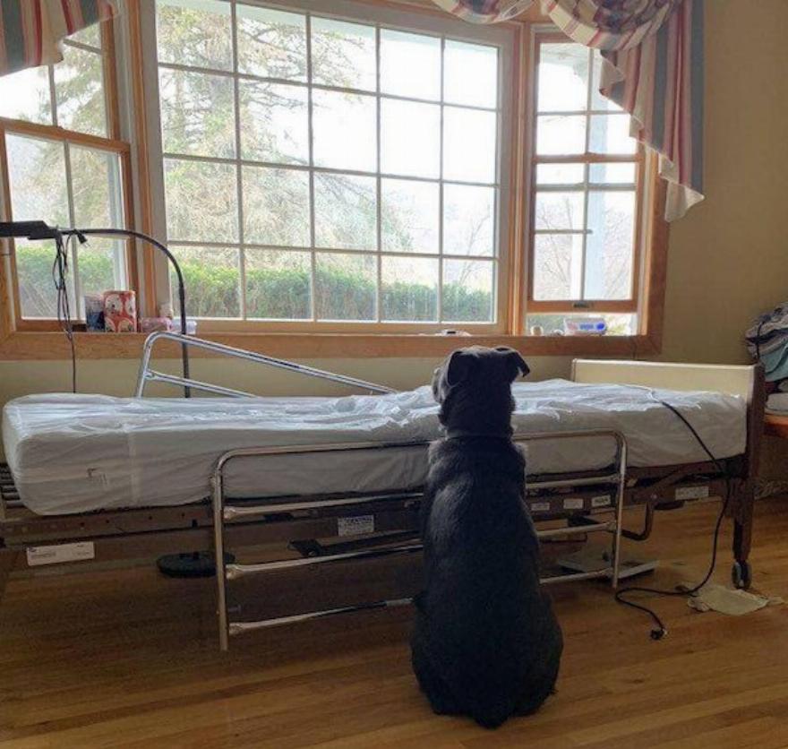 Ο σκύλος, Moose, απεικονίστηκε να κάθεται δίπλα στο κρεβάτι του ανθρώπου του στο νοσοκομείο, περιμένοντας υπομονετικά την επιστροφή του μπαμπά του, χωρίς να γνωρίζει ότι ο ιδιοκτήτης του είχε πεθάνει.