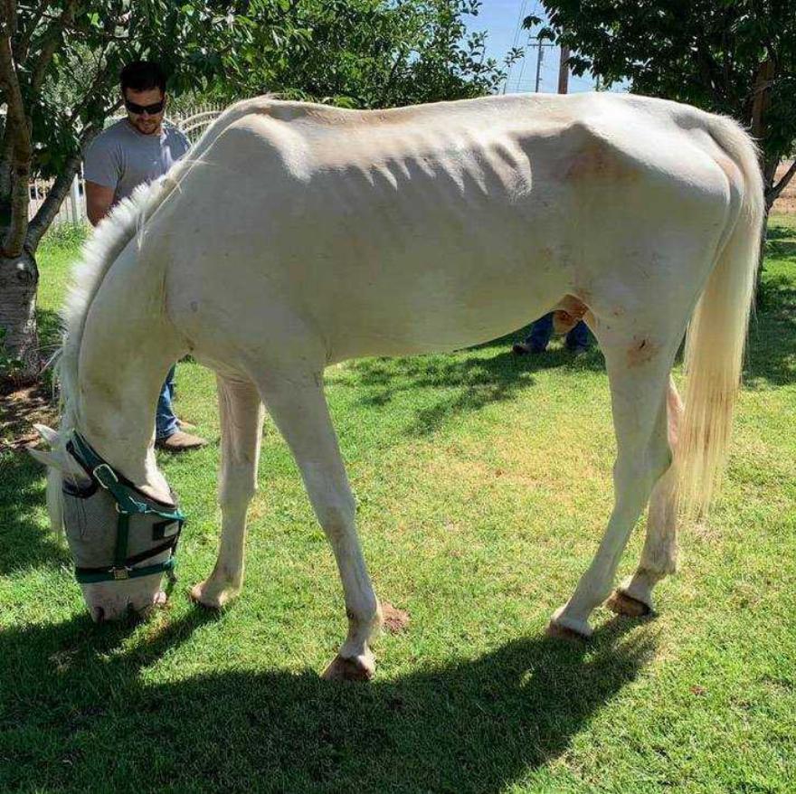 Το άλογο ήταν σε σοβαρή κατάσταση όταν έφτασε εδώ και η εξέταση αίματος έδειξε ότι βίωνε μια παρατεταμένη κατάσταση πείνας, πρόσθεσε ο διασώστης.