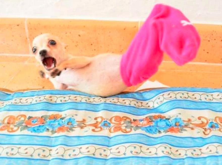 Μη, μη με σκοτώσεις σε παρακαλώωωω. Ωπ ρε φίλε κάλτσα ήταν; Μα τι φλ@ρος αυτός ο σκύλος; Τς τς τς