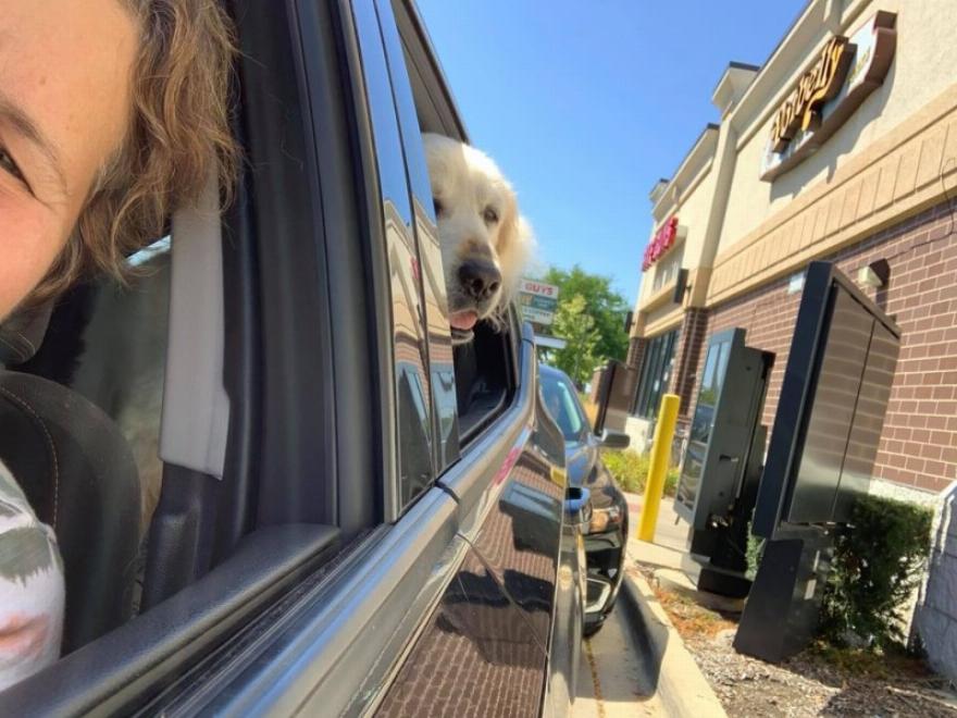 Η Leach απεικονίζεται με τον 12χρονο Theo, ο οποίος βρήκε τον σκύλο σε άθλια κατάσταση στο πάρκινγκ του εμπορικού κέντρου Joliet.III.Walmart. Η ίδια αναφέρει: “Ο Theo έχει έναν κακοήθη όγκο στην κοιλιά του. Ο κτηνίατρος είπε ότι ο Theo δεν έχει πολύ χρόνο ζωής, αλλά δεν ήξερε πόσο. Και παρά τα όσα περνάει, είναι ευτυχισμένος.
