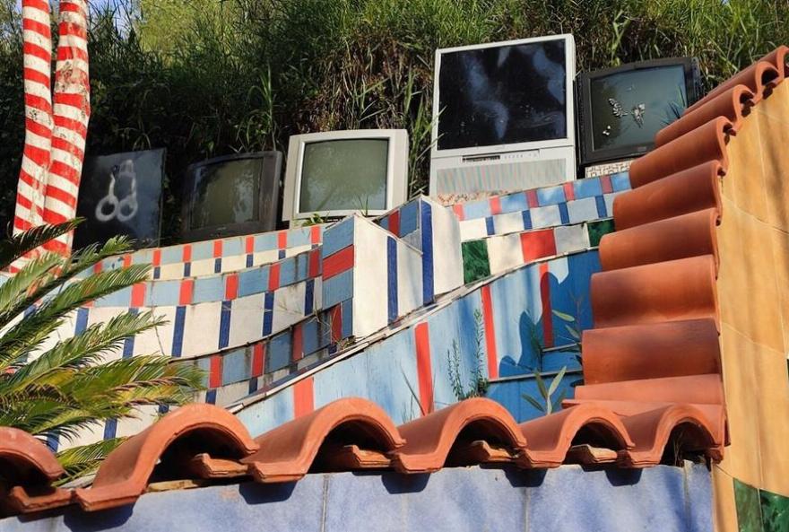 Εκτός από τα εκατομμύρια πλακάκια εντυπωσιάζουν οι τηλεοράσεις παλιάς τεχνολογίας που έχουν τοποθετηθεί στα δέντρα, στις ελιές και στα πεύκα δημιουργώντας ένα σουρεαλιστικό σκηνικό. Παλιά βίντεο, παλιά ποδήλατα τα οποία έχουν βαφτεί πολύχρωμα, ένα παλιό σιδερένιο κρεβάτι και πήλινα αγάλματα περασμένων δεκαετιών όπως ο κλασσικός μπεκρής.