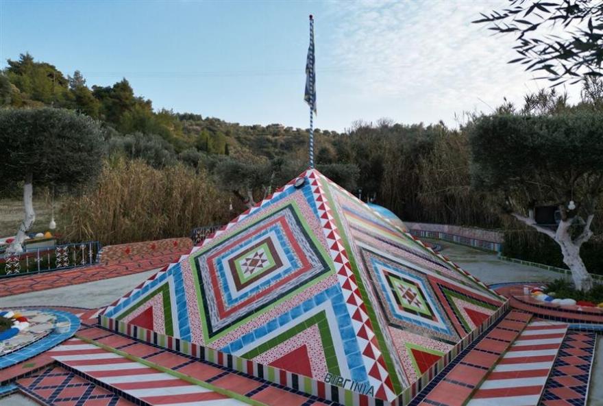 Στη βάση ενός εντυπωσιακού καραβιού αλλά και μιας πυραμίδας που φυσικά είναι όλα ντυμένα με πλακάκια υπάρχουν δύο ονόματα. «Λαμπρινή ήταν το όνομα της μητέρας μου και Βιργινία το όνομα της γυναίκας μου. Και οι δύο έχουν φύγει από τη ζωή και τους έχω αφιερώσει όλη αυτή τη δουλειά νύχτα μέρα»