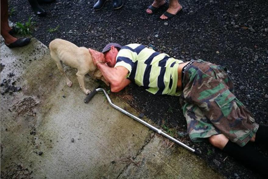 Έτσι, κάλεσαν ασθενοφόρο για βοήθεια, ενώ ο σκύλος δεν έφυγε ποτέ από το πλευρό του ιδιοκτήτη του.