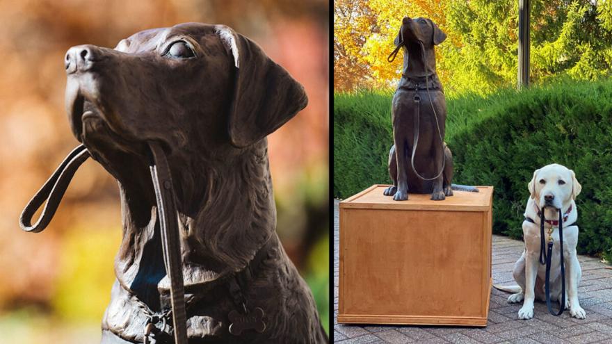 Σε αναγνώριση της Ημέρας των Βετεράνων, το άγαλμα σε φυσικό μέγεθος αποκαλύφθηκε στην πανεπιστημιούπολη America’s VetDogs στο Long Island.