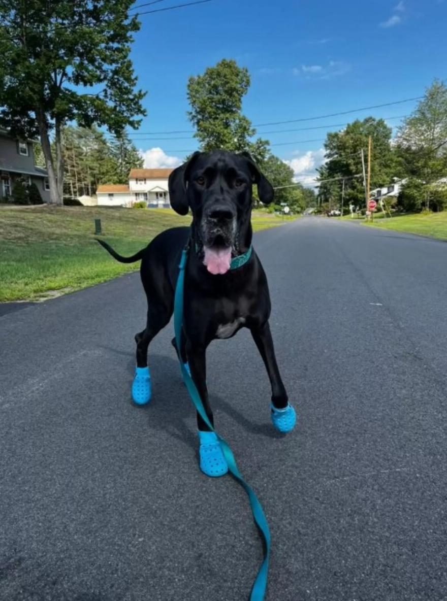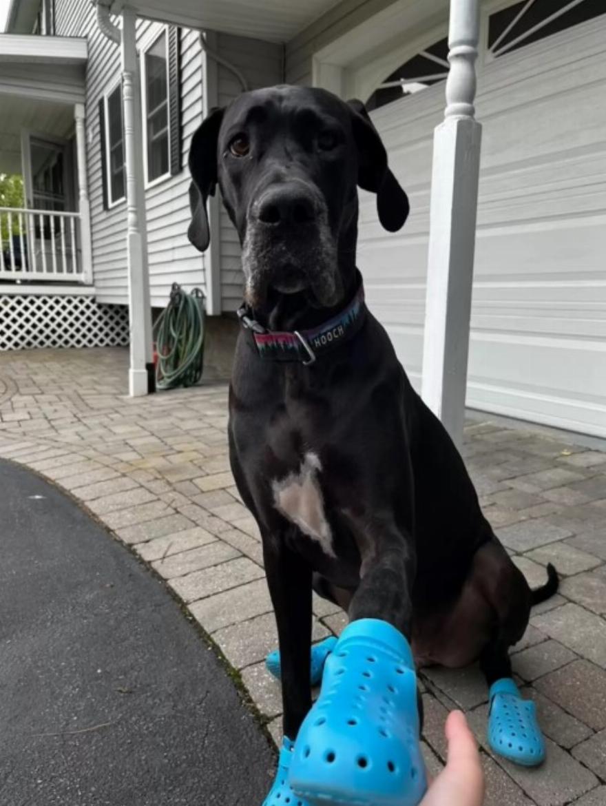 Η Hooch φοράει συχνά μποτάκια για να προστατεύει τις πατούσες της όταν βρίσκεται έξω και όταν η μαμά της είδε τα “Crocs” για σκύλους να διαφημίζονται στο διαδίκτυο, ήξερε ότι έπρεπε να αγοράσει ένα ζευγάρι για τη Hooch και να τα δοκιμάσει. Σκέφτηκε ότι θα ήταν τουλάχιστον μια χαριτωμένη φωτογράφιση – αλλά μόλις τα φόρεσε, η Hooch τα ερωτεύτηκε.